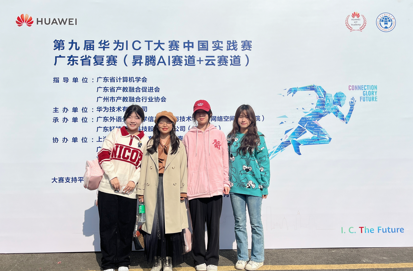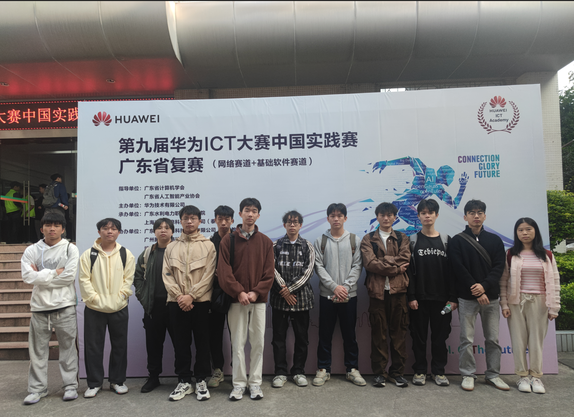 2024年12月7日,第九届华为ICT大赛广东省决赛分别在广东外语外贸大学和广东水利电力职业技术学院举行,在邬粒老师和谢香艳两位老师带队下14名同学分别赴两个赛点参加省决赛,预祝他们取得好的成绩。