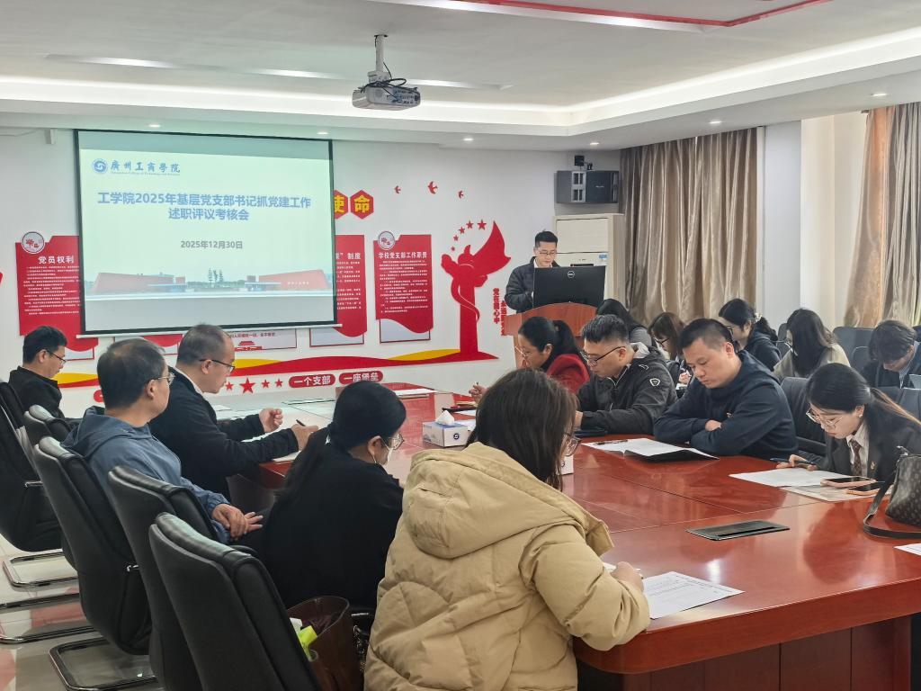 【本网讯】为深入学习贯彻党的二十届四中全会精神,落实全面从严治党要求,进一步压实基层党建责任,12月30日上午,工学院党委组织召开2025年度党支部书记抓党建工作述职评议考核会。学院党委委员、各基层党支部书记、师生代表共计40余人参会。会议由党委委员郭婷婷主持。