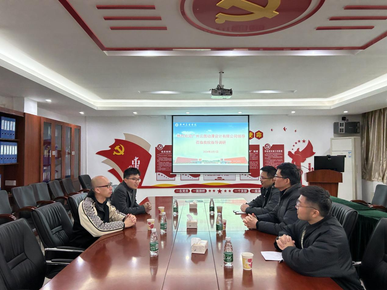 【本网讯】3月1日,广州云图动漫设计有限公司市场总监肖寅爽一行莅临我院参观调研并洽谈校企合作。学院副院长胡垂立陪同调研并出席交流座谈会。
