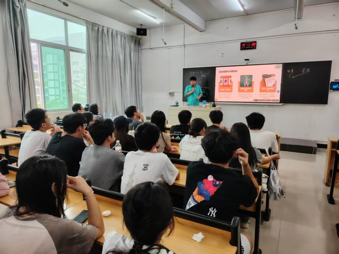 讲座伊始,权力院长结合自身从求学到成为企业技术领路人的丰富经历,迅速拉近了与同学们的距离。他首先围绕“大学期间的目标建立”这一核心议题,强调了早期规划的重要性。权力院长指出,大学不仅是知识殿堂,更是从学生到职业人转变的关键孵化器。他鼓励同学们尽早树立清晰的短期与长期目标,将个人兴趣与国家大健康战略、食品产业升级的宏观背景相结合,找到学习的深层动力。在“如何实现个人成长”部分,权力院长分享了“知行合一”的成长理念。他建议同学们不仅要深耕专业,更要广泛涉猎,积极参与社团活动与社会实践,培养批判性思维、有效沟通与团队协作等可迁移技能,构建多元化的知识体系和能力结构。