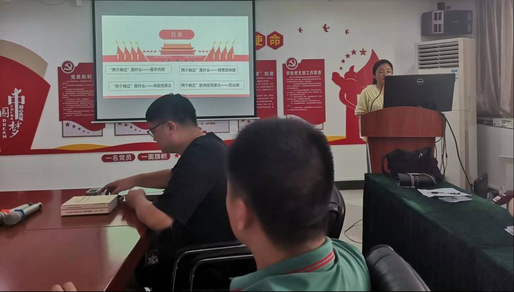 首先由领学人郭婷婷同志带领学员深刻领悟“两个确立”的决定性意义主题。郭婷婷同志表示:“两个确立”是党的十八大以来最重大的成果,具有决定性的意义。接着,由钟伟同志、孙珊珊同志、陈可昕同志分别进行分享发言,一并指出了“两个确立”意味着我们要坚定不移地跟随党的领导,把党作为最高政治领导力量,始终保持对党的高度忠诚。