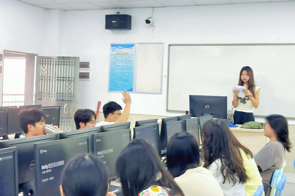 随后,周嘉蔚老师的《Unity项目实训课程》翼学课专业拓展课也在23级创意实验班同学们的期待中顺利展开。该课程是建立在黄土振老师主讲的串讲课基础之上,聚焦Unity引擎的使用,覆盖了从基础操作到实际项目开发的全面内容。周老师结合丰富的项目经验,向同学们分享了创意开发过程中的实用技巧,并鼓励大家积极动手实践。课程期间,同学们参与了多种创意项目的实践,体验到了游戏开发的乐趣与挑战。