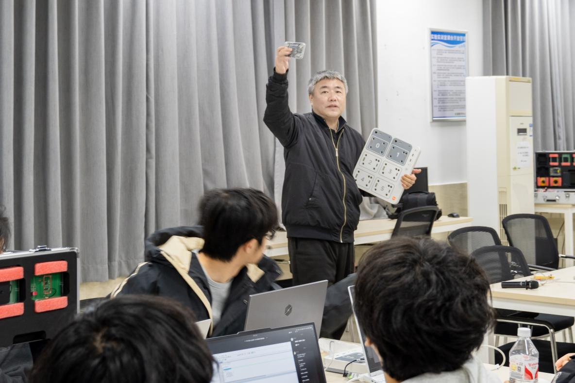 实训在学校的实验楼内紧张而有序地进行。袁小庆导师首先为学生们介绍了AIoT(人工智能+物联网)的时代背景和发展趋势,强调了物联网技术在未来社会中的重要地位。他提到,随着嵌入式、人工智能、无线通信等技术的不断发展和5G网络的普及,AIoT时代已经全面到来,IT行业的重心正由移动端转向万物互联,“物”的智能化和网联化已成为当前IT行业的主题。