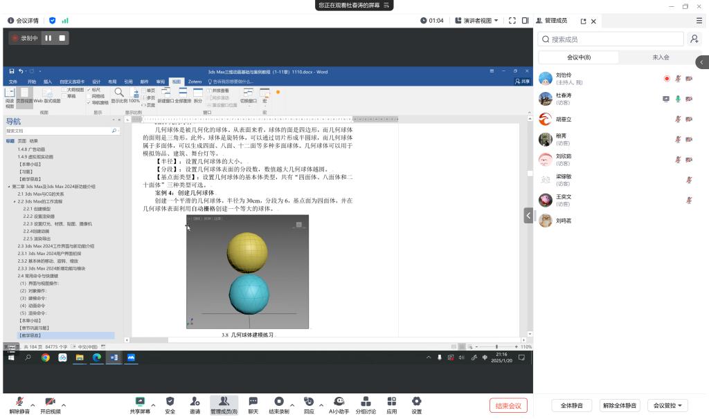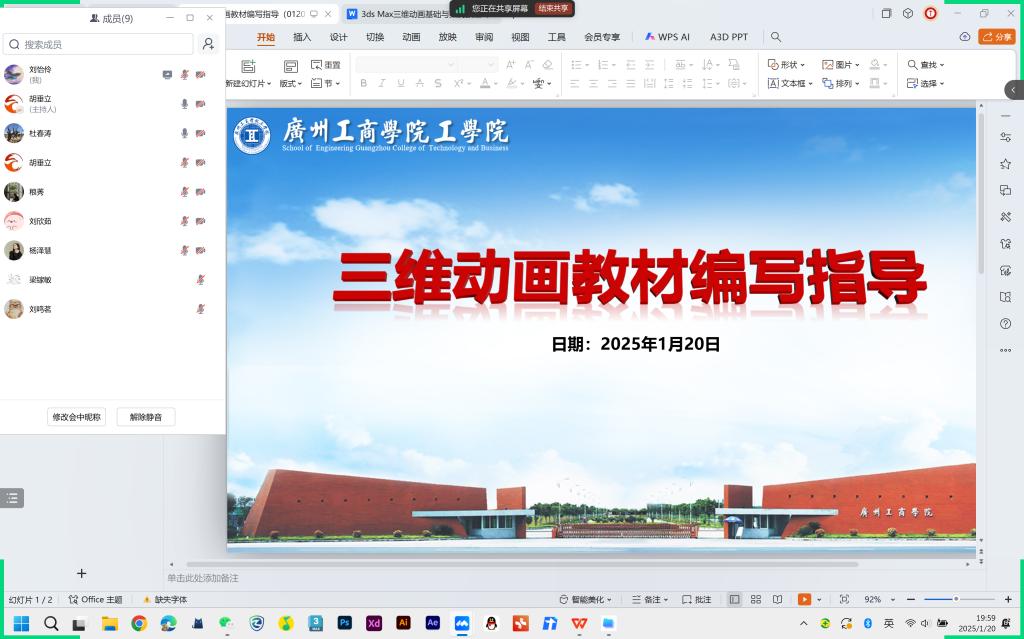 【本网讯】2025年1月20日晚8点,ky开元集团官网工学院数字媒体技术专业举办了一场线上腾讯会议讲座,主题为“三维动画教材编写指导”,此次讲座针对教师们之前撰写的三维动画教材初稿,旨在提升专业教材编写质量,融入思政元素,丰富教学内容。讲座邀请了北方工业大学信息学院杜春涛教授作为主讲专家,工学院副院长胡垂立教授主持。