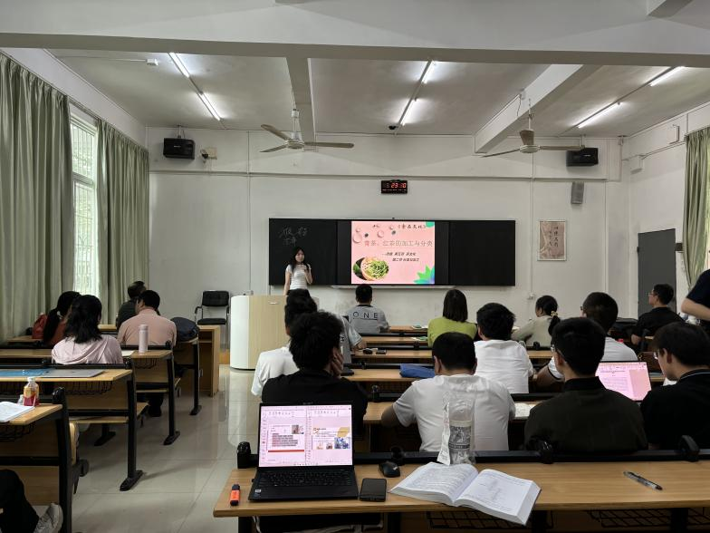 第三位是李倩老师,她讲授的是《食品文化》中有关青茶和红茶的分类与加工的内容。她讲课条理清晰、重难点突出,语言表达得体。老师们建议可以适当补充一些茶文化背后的思想内涵,或结合学生更为熟悉的咖啡文化进行对比,增加课程的人文吸引力。