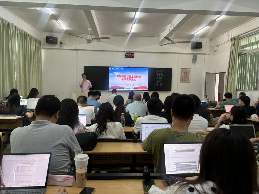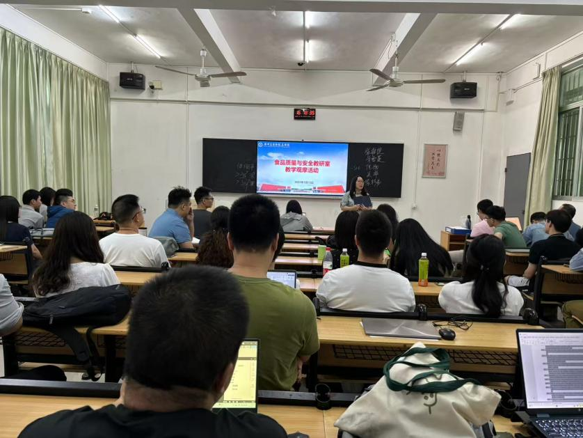 【本网讯】为深入贯彻落实胡垂立副院长提出的工学院教学“冲省”“造星”推进计划,进一步提升课堂教学质量,推动教师教学能力不断发展,食品质量与安全教研室于2025年5月15日下午14:00在教学楼II-C101室组织开展了本学期第三次教学观摩活动。活动由食品质量与安全教研室副主任钱镭主持,教研室全体当时段无教学任务的教师积极参加,现场交流气氛热烈,研讨充分,取得了良好效果。