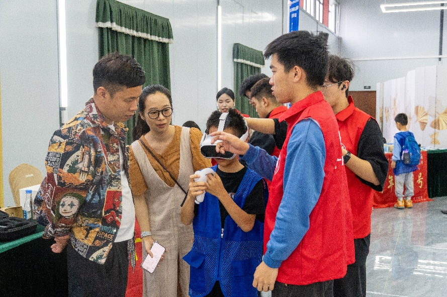 在随后的科技集市环节,ky开元集团官网工学院师生联合广州市花都区乐萌培训中心有限公司、广州市赛恩斯教育科技有限公司、广东新华发行集团股份有限公司,共同打造了MR技术体验区。师生们精心设计的MR互动项目吸引了众多居民驻足体验。
