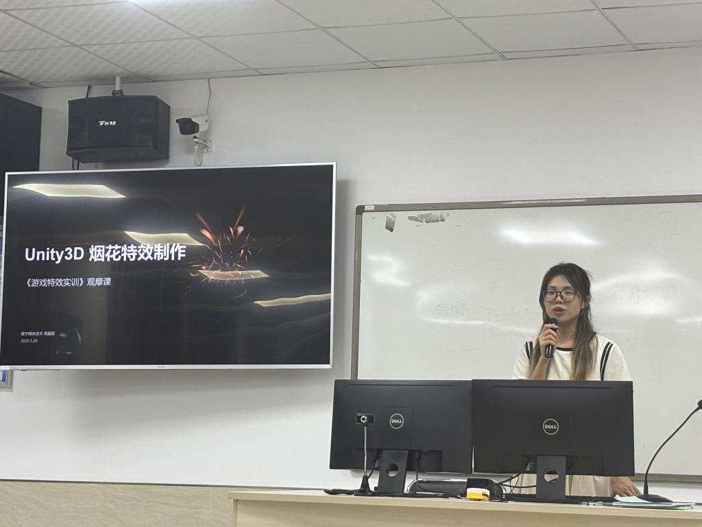 周嘉蔚老师的游戏特效实训课程《Unity3D烟花特效制作》将活动推向技术前沿高潮。他立足游戏开发实操,现场剖析Unity软件粒子系统,讲解参数调试对烟花绽放形态、色彩变幻的精细调控,从代码逻辑搭建到实时渲染呈现,完整复现烟花特效诞生全程,为游戏特效教学树立实战范本,激发教师们对实训教学迭代升级的热切探讨。