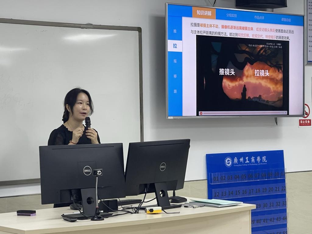彭丽丽老师率先登场,带来数字音视频处理课程《镜头推拉摇移跟》的精彩讲解。她以丰富影像实例为切入点,深入剖析镜头运动技巧如何赋予画面灵魂,从平稳推镜头的细腻刻画,到摇移镜头的广阔视野拓展,生动展示了镜头语言在叙事、表意中的关键作用,引得在场教师频频点头,仿若置身于数字影视创作的幕后现场,重新审视影像创作的精妙。