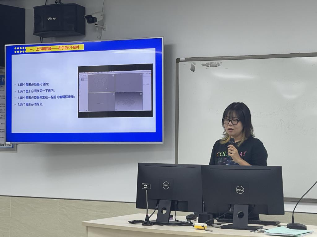 王奕文老师携三维造型与动画技术课程《二维图形制作三维模型——车削命令运用》接棒而上。讲台上,她循循善诱,从二维图形绘制要点讲起,逐步揭秘车削命令的运算逻辑与操作细节,以机械零件模型创作为示例,将抽象的几何变换转化为直观的三维成果,让教师们看到二维与三维世界在教学指引下顺畅联通,为复杂造型教学开辟新径。