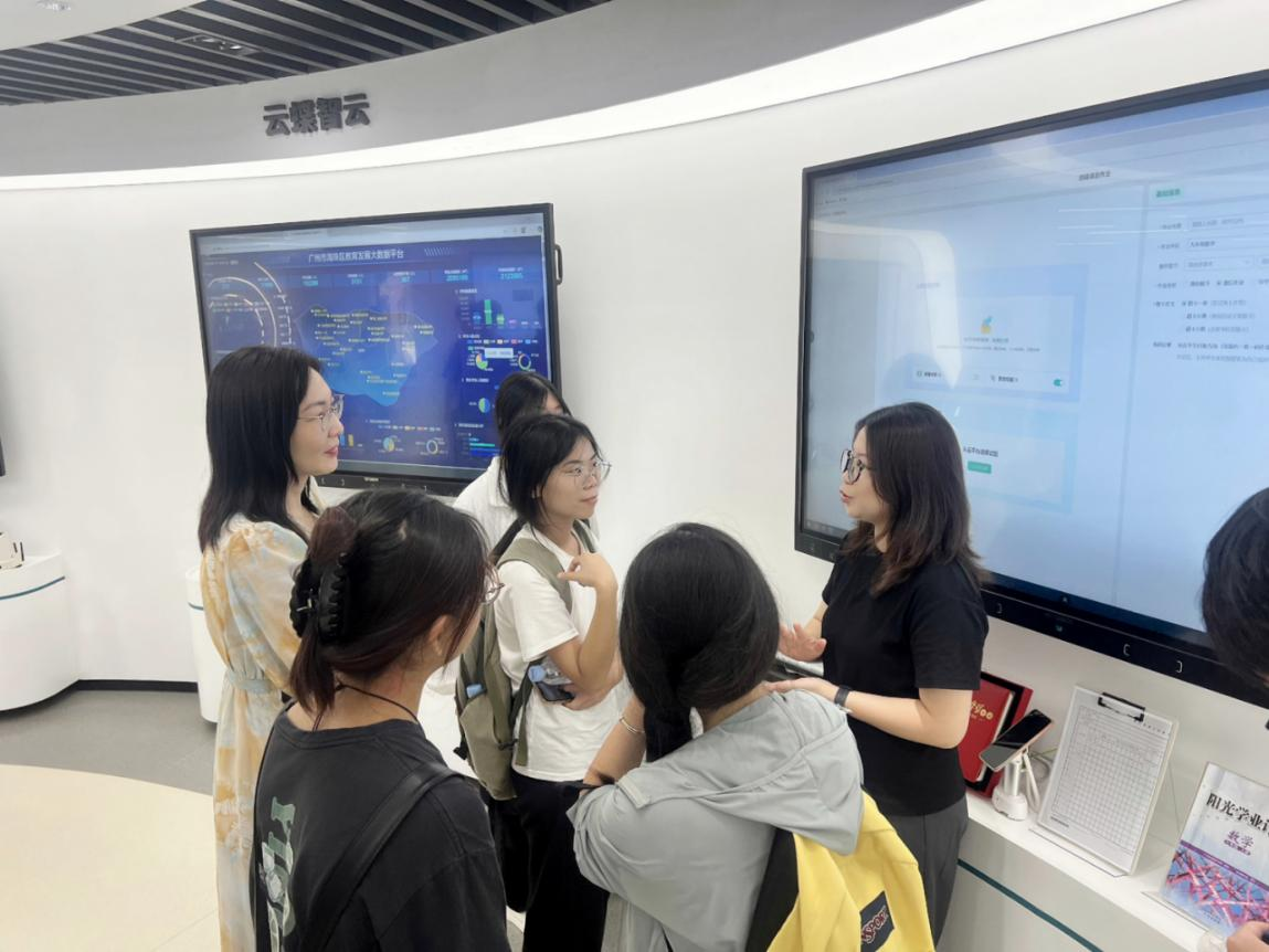 下午,师生一行抵达广州云蝶科技有限公司。云蝶科技以教育数字化为起点,逐步构建覆盖多产业的AI赋能体系,依托核心技术积累与产学研深度协同,成为华南地区数字化转型的标杆企业。技术负责人分享了公司在云蝶智脑、智慧纸笔课堂、AI心理健康监测预警系统、智能硬件等领域的核心产品和解决方案。最令同学们兴奋的是近距离接触了“云蝶教研辅助大模型”、“智能运动监测”系统演示。这不仅是技术展示,更是对软件工程如何驱动产业智能化升级的生动诠释,让书本上的“人工智能”、“机器学习”概念变得触手可及。同学们围绕技术细节、应用挑战与职业发展路径,与企业工程师展开了热烈讨论。