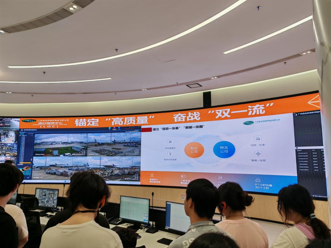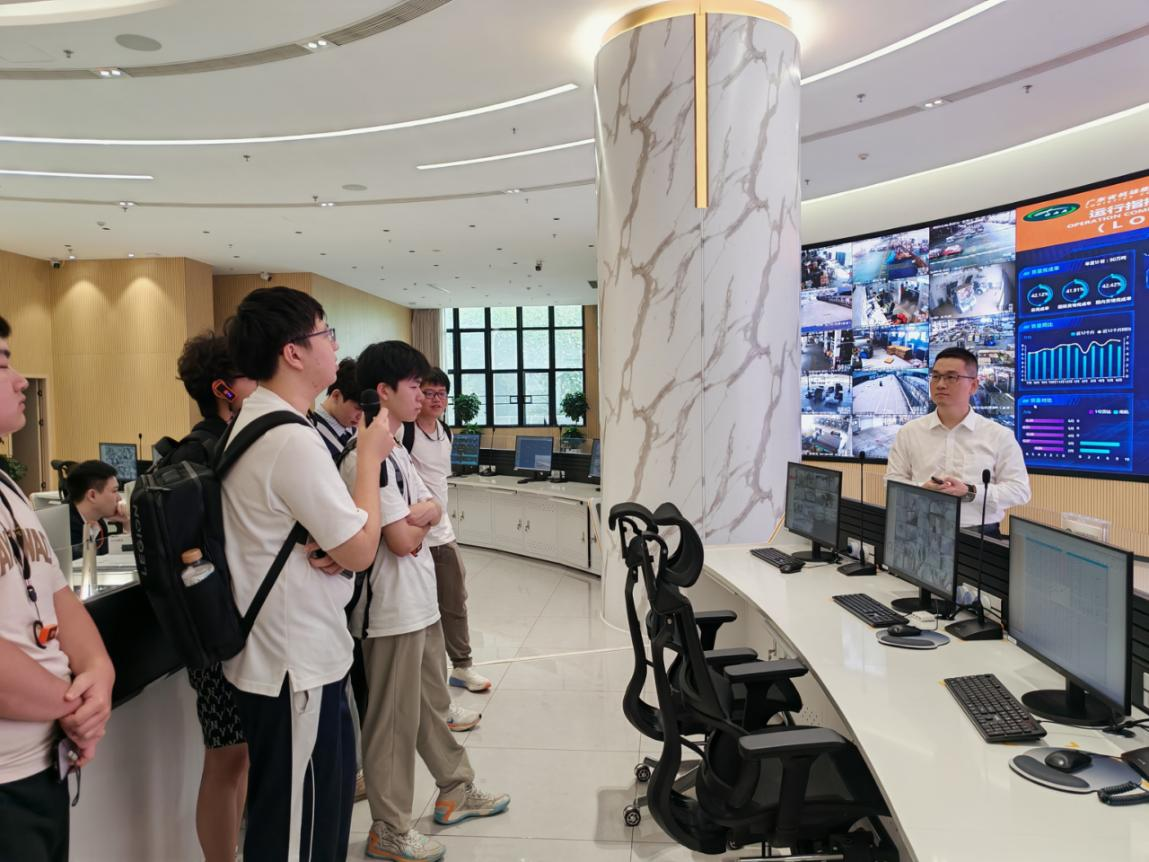 在广东省机场集团物流有限公司,同学们先参观了数智科技中心展厅,企业专家详细介绍了从货物接收、智能分拣到高效仓储、航班配载的全流程智能化系统,重点展示了物联网技术、大数据平台及AI算法在提升物流效率、保障航空安全方面的创新应用。当看到自动化分拣线上包裹精准流转,大数据屏幕实时更新全球货物动态时,同学们深刻体会到“AI+”如何重塑现代物流的运作模式,也对课堂所学的数据结构、算法设计、系统集成等知识在解决大规模复杂物流问题中的价值有了直观认识。