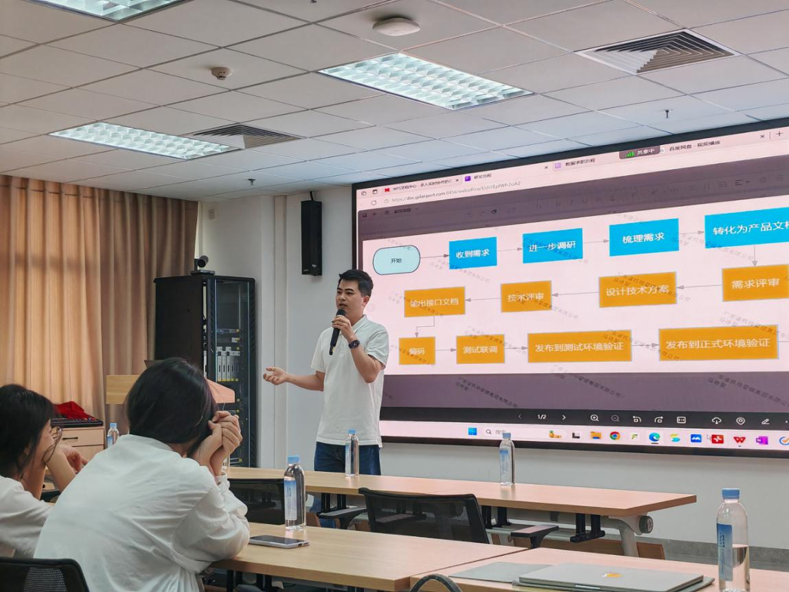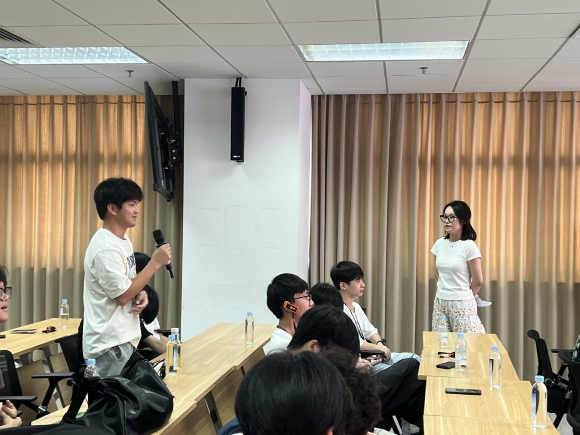 接着,同学们前往中心二楼继续交流。中心总经理彭璇先全面介绍部门的整体架构、发展情况,并重点分享了企业在数字化转型道路上取得的标志性成果及未来发展方向。然后周文珺经理聚焦项目的落地实践,从项目管理、项目实施等方面呈现了一个项目是如何科学落地的,周经理的分享通过具体案例的拆解,让同学们看到了理念如何转化为行动,挑战如何被克服,价值如何被创造的全过程。接着中心研发主管杨承恩、运维主管林健智、数据挖掘专家陈乐纯分别从技术赋能业务的角度为同学们分享了技术创新上的感想和体会。