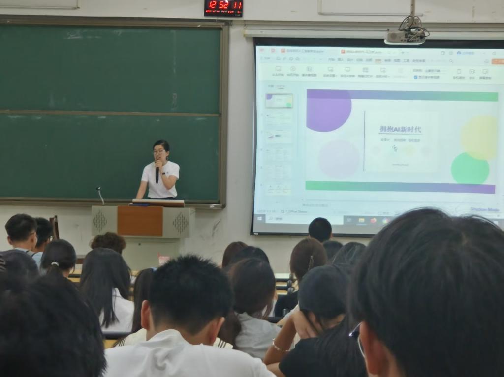 马卫娇老师以"拥抱AI新时代"为题,为新生描绘了人工智能发展的宏伟蓝图。她从生成式AI、多模态大模型、AI Agent等前沿技术切入,结合全球AI市场规模与人才缺口数据,指出"人工智能正处于黄金时代"。为同学们制定了清晰的四年规划,强调要夯实基础、深入专业、参与实践、实现过渡。