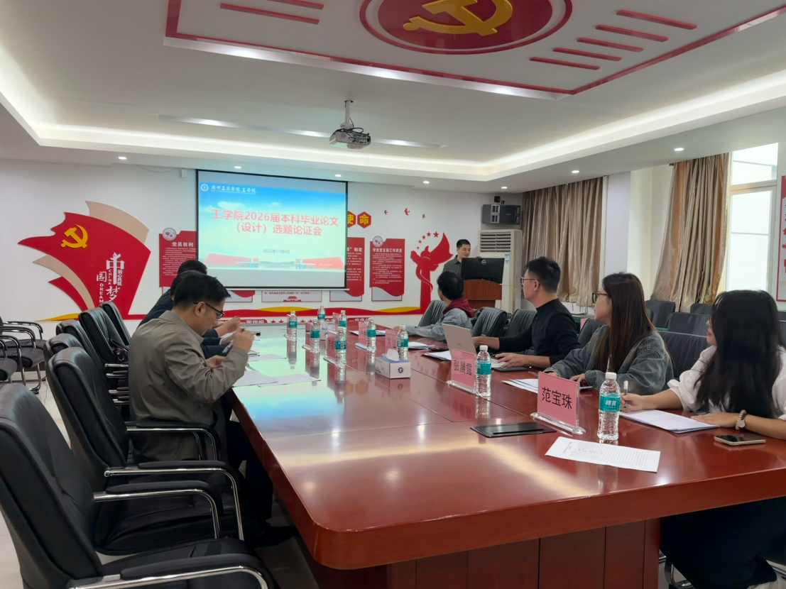 【本网讯】2025年11月6日,软件工程专业在三水校区院部楼512会议室召开2026届本科毕业论文(设计)选题论证会。会议由软件工程教研室主任卢鹏主持,邀请了华南师范大学阿伯丁数据科学与人工智能学院院长曾碧卿、广州理工学院人工智能学院院长王煜林、广州商学院现代信息产业学院副院长李绍强,软件工程专业骨干教师共同参会。