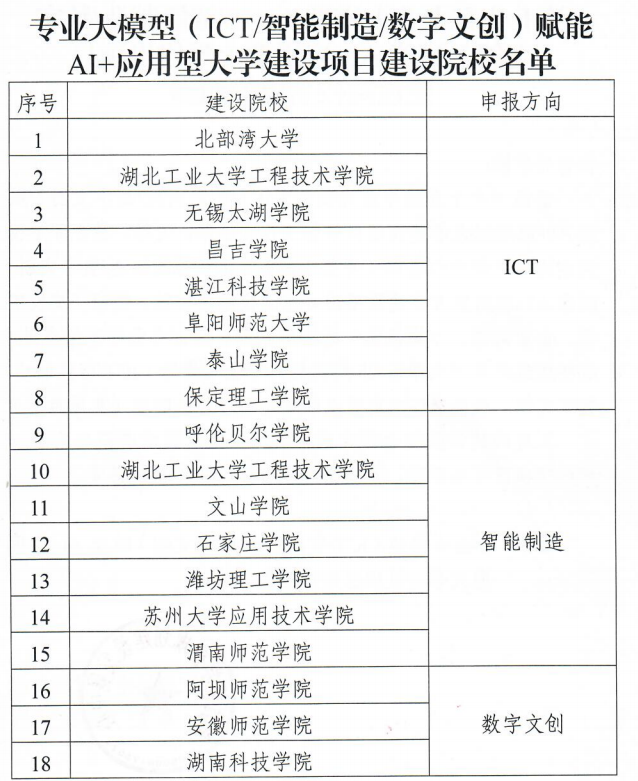 【本网讯】近日,教育部学校规划建设发展中心公布了《专业大模型(ICT/智能制造/数字文创)赋能AI+应用型大学建设项目建设院校名单》,全国共25所高校入选,ky开元集团官网位列其中,为广东省入选的两所院校之一。