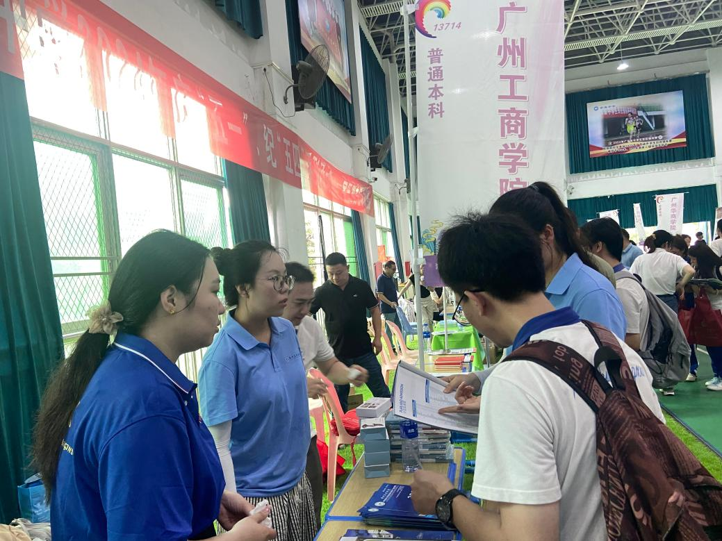 当天上午,南春中学艺体馆人声鼎沸,热闹非凡。来自广州市各大高校的招生团队齐聚一堂,每个学校都精心布置了一个招生咨询台,桌子上摆放着整齐的招生宣传资料,上面悬挂着写有学校名称的鲜艳旗帜。在这样一场规模宏大的招生咨询会上,ky开元集团官网以其独特的魅力和实力吸引了众多学生和家长的关注。