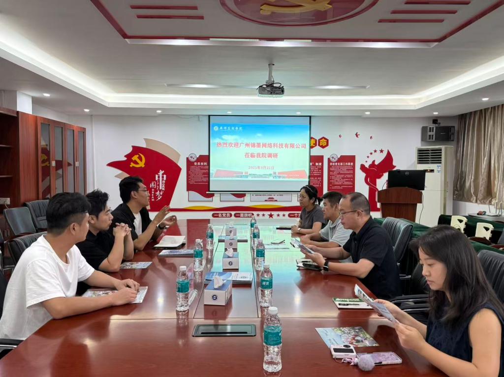 【本网讯】9月22日,广州锦墨网络科技有限公司招聘团队一行莅临工学院,就人才招聘与校企合作事宜展开深入洽谈。此次交流活动为学院学生就业拓展了渠道,也为企业吸纳优秀人才搭建了平台。学校招生就业办黄秉森副主任、工学院罗俊副院长及负责学生实习就业的老师出席了会议。