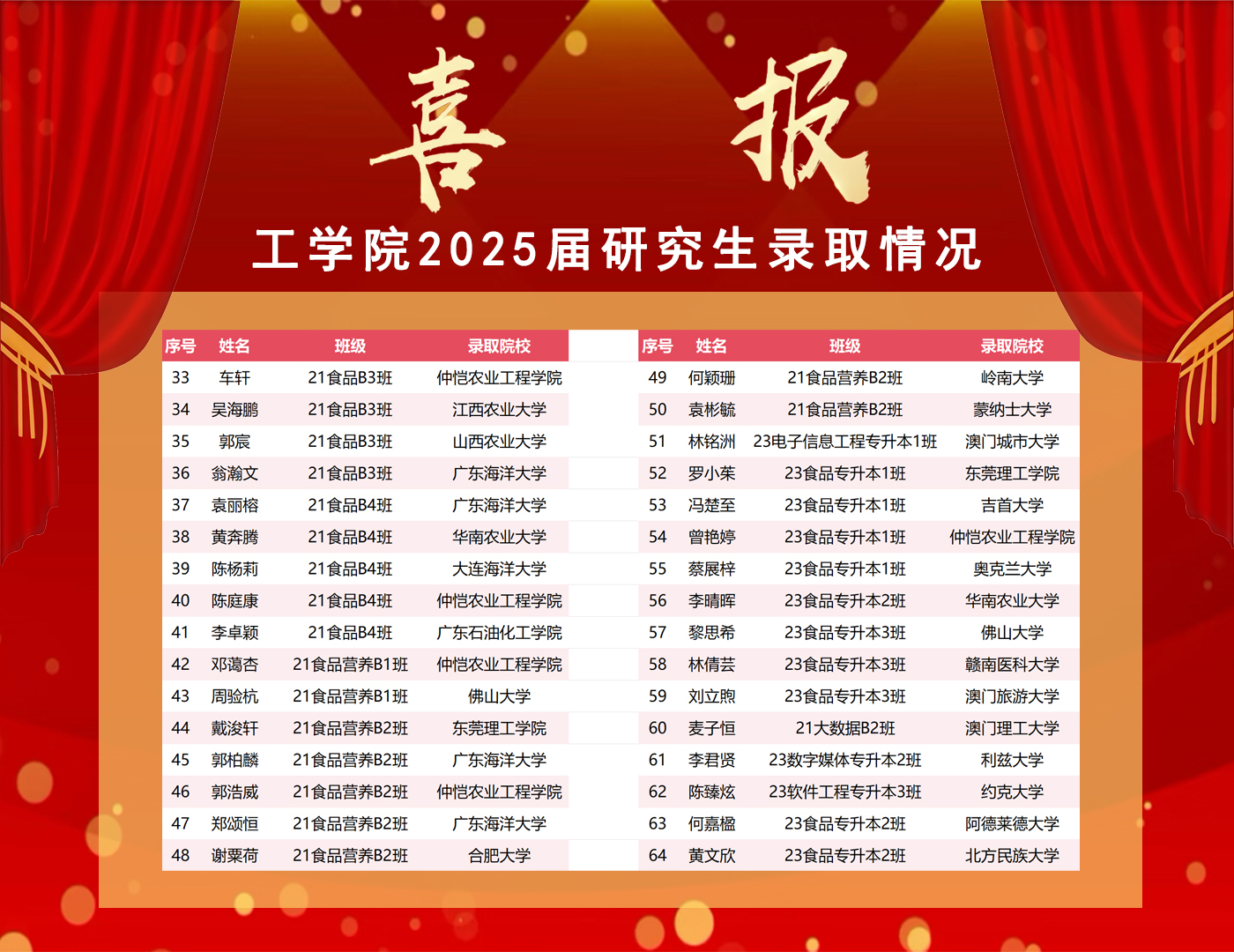 【本网讯】学院2025年考研工作捷报频传,学院共有64名毕业生成功实现深造梦想,获得学校考研资助。其中,52名学子被国内研究生院校录取,12名学子赴境外深造。在资助方面,13名学生获得学校A档标准资助,51名学生获得B档标准资助,资助人数占学校31.53%。这份亮眼成绩单,既是考研学生寒窗苦读、奋力拼搏的结果,也是学院提高教学质量,扎实推进“五进”教育实践活动成效的生动体现。