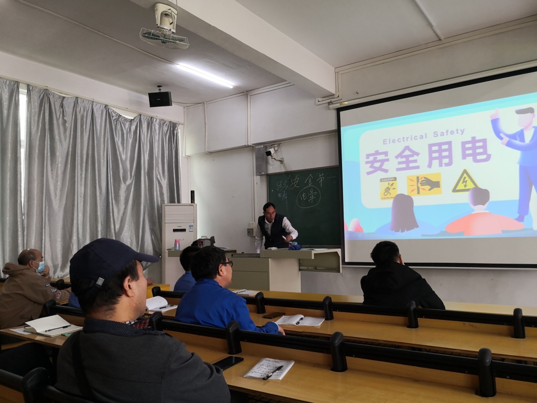 为响应学院号召,规范电工安全操作,提高电工服务意识,后勤处于3月25日组织了全体电工进行安全培训。 培训重