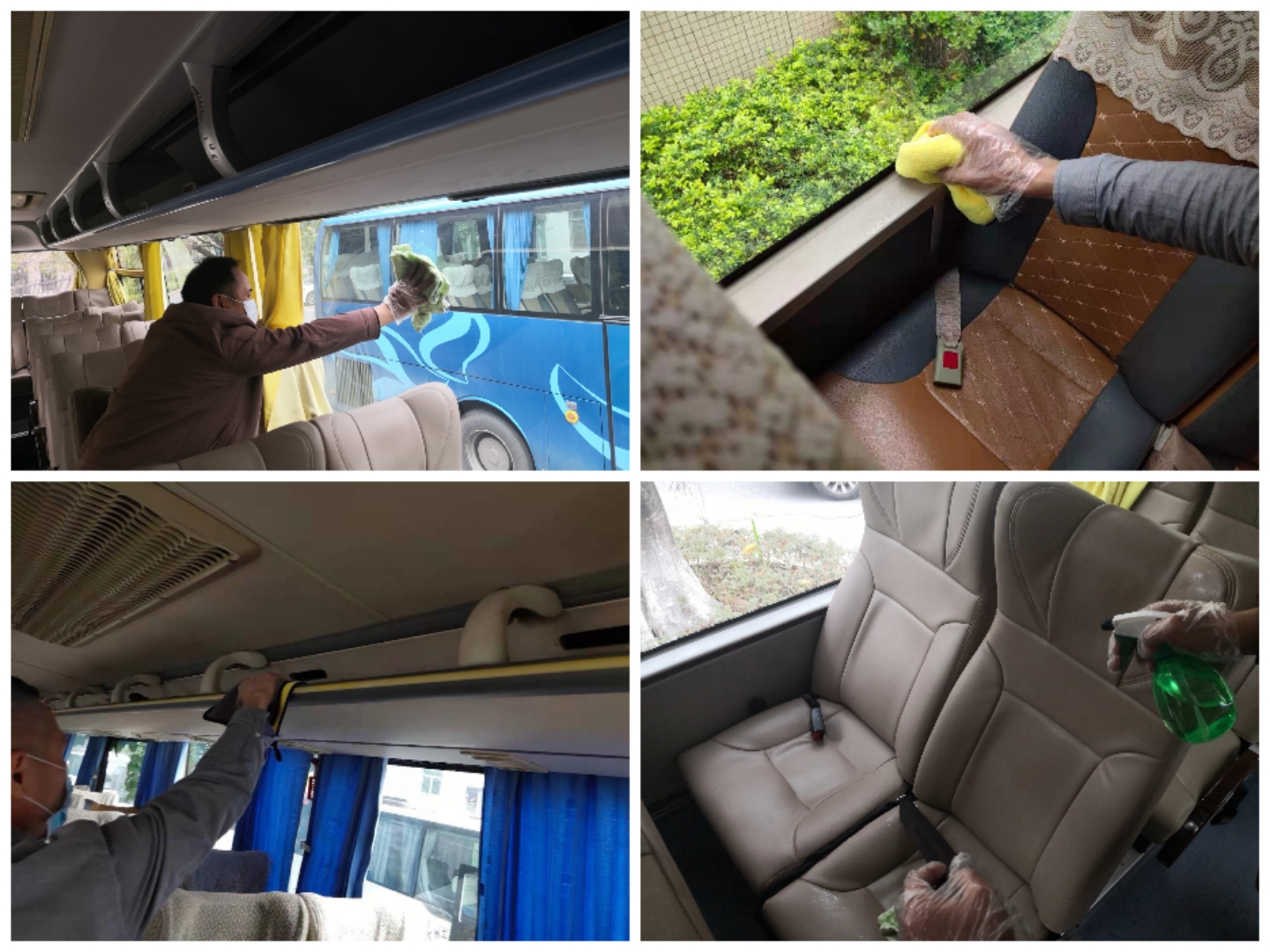 除重点对车辆座椅、扶手等乘客直接接触的部位用沾着消毒液的抹布进行细致的擦拭外,还会对车厢地板、车厢内壁、空调回口等进行消毒喷洒,为校车正常工作提供强有力的后勤保障。