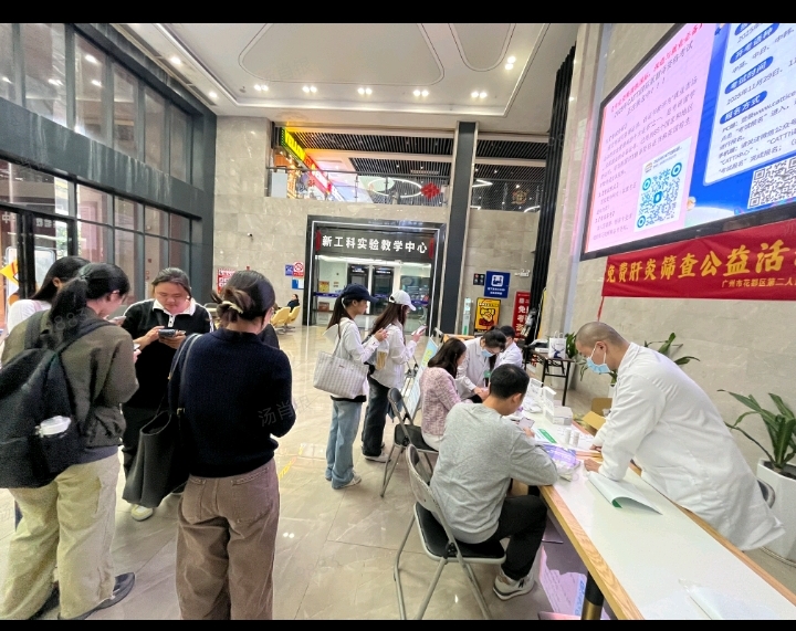 从筛查对象到服务内容,活动尽显针对性与专业性。筛查范围覆盖师生和第三方工作人员,尤其聚焦乙肝、丙肝病毒感染高危人群,包括家族中有肝炎患者、有输血史、长期饮酒者及免疫力低下人群等。服务项目除免费提供乙肝五项(含乙肝表面抗原、表面抗体等)和丙肝抗体检测外,现场还安排专业人员提供肝功能基础咨询。结果反馈也高效透明,3个工作日内参与者可通过“广州市预防接种”微信小程序的“肝炎筛查”板块查询结果,若需进一步诊疗,将获得专业就医指导。前期准备充分,活动现场秩序井然。