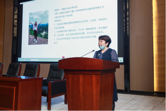 黄老师从垃圾分类的政治背景、各国垃圾分类的措施等现实情况分析了广州市开展垃圾分类的紧迫性和必要性,随后通过对广州市生活垃圾分类投放指南以及《广州市生活垃圾分类管理条例》的解读,指导大家如何在日常生活中正确投放垃圾。最后,通过知识问卷对在场师生代表进行垃圾分类投放小测试。