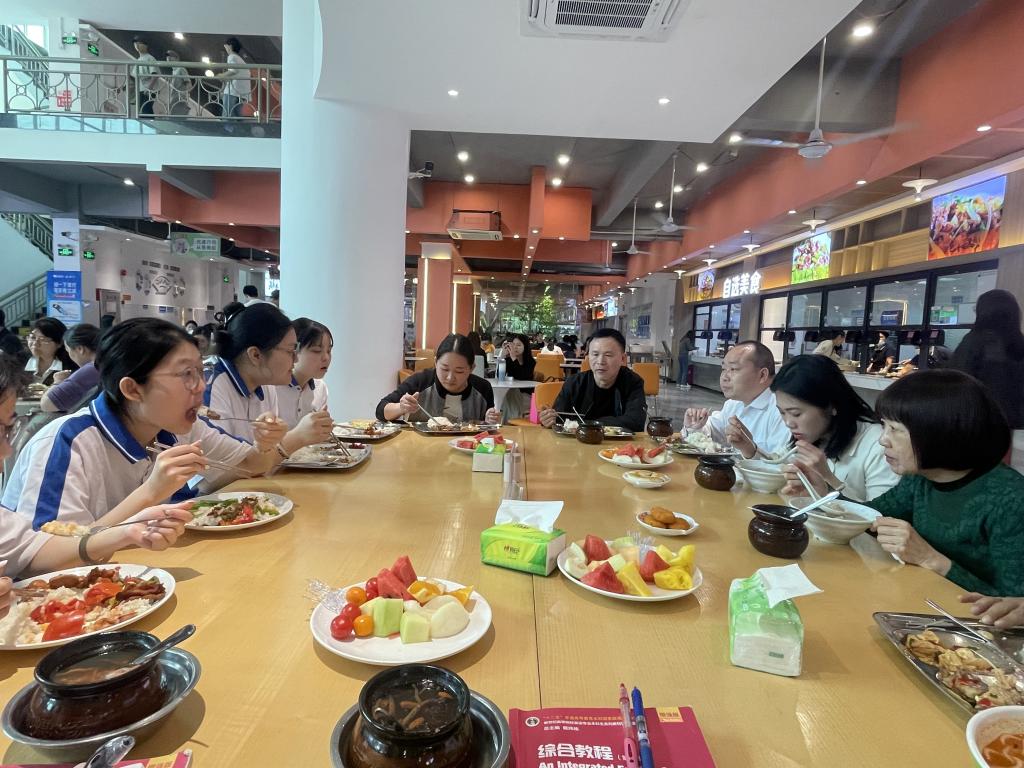为进一步强化学校食品安全管理,增进校领导与学生之间的沟通交流。2025年3月25日,学校在花都校区第一饭堂一楼举办了第十期“校领导午餐会”。学校副校长易露霞与来自各学院的6位学生代表共进午餐。后勤处负责人、学校食品安全员、食堂负责人、食堂食品安全总监、校团委代表一同参加活动。