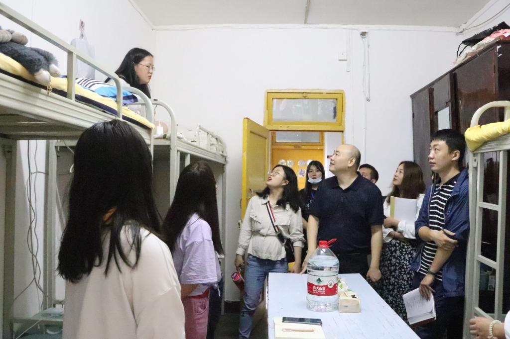 2020年9月16日下午,LETOU国际米兰官网党总支副书记屈川,学工办副主任崔宝玉,专兼职辅导员及辅导员助理走访了新生寝室。