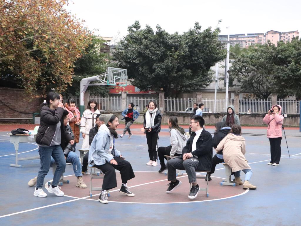 活动分为户外体验活动以及室内讲座。户外体验活动由踩气球、抢板凳、一元五角、马兰开花、萝卜蹲、击鼓传花、坐地起身、传面粉八个游戏组成。活动过程中,同学们积极参加,展现大学生的青春活力和机智勇敢,并在欢快的游戏氛围中放松了心情。获得的游戏奖品虽小但令人满足,整个户外活动充满了欢声笑语。