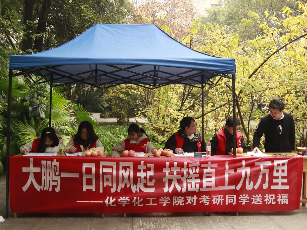 活动在南坝校区图书馆门口举行,活动包括设置横幅激励、师生献祝福、考研学子留言纪念、领取水果糖果增加获得感等多项内容。活动中,广大师生热情参与,纷纷在留言板上表达观点、想法,有对考研师兄师姐的殷切祝福、有对自己个人成长发展的美好期盼、还有考研人备考过程中的心路历程,更有老师留言表达对莘莘学子的厚爱与祝福。同学们在温馨的话语中感受到爱的力量,化解了成长中的压力与烦恼,感受到了人性的温暖。