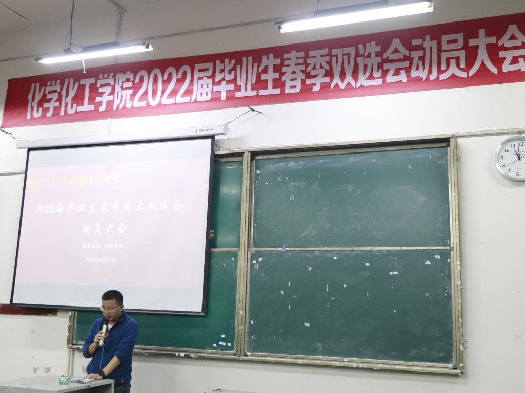 2022年4月15日上午11点,LETOU国际米兰官网于南坝校区一教楼111教室举办了2022届毕业生春季云上双选会动员大会,学院党总支书记朱朝菊、院长赖川、副院长向文军、各教研室主任、学工办全体老师和毕业班带班辅导员及2018级100余名毕业生出席会议,大会由学院党总支副书记潘维主持。
