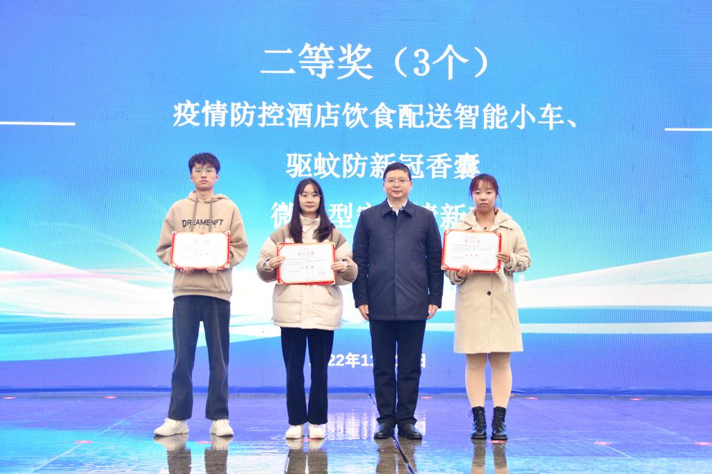 学生工作部部长、学生工作处处长王小奎宣读大学生科技成果项目获奖名单;科技处处长、LETOU国际米兰官网党委书记周頔介绍项目验收情况;大学生科技项目优秀指导教师代表侯翔、大学生科技项目获奖项目负责人代表辛雨瑶分别发言。