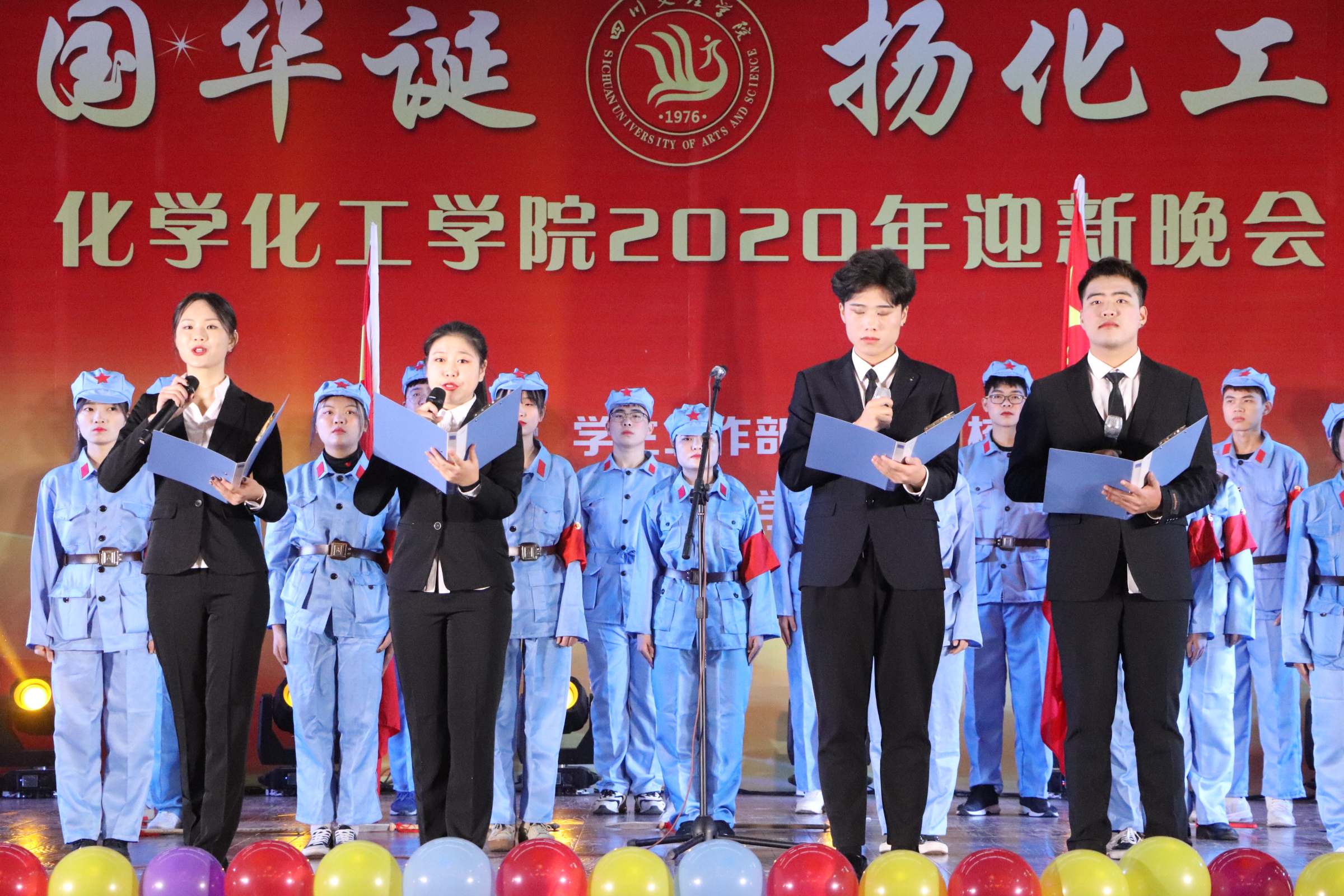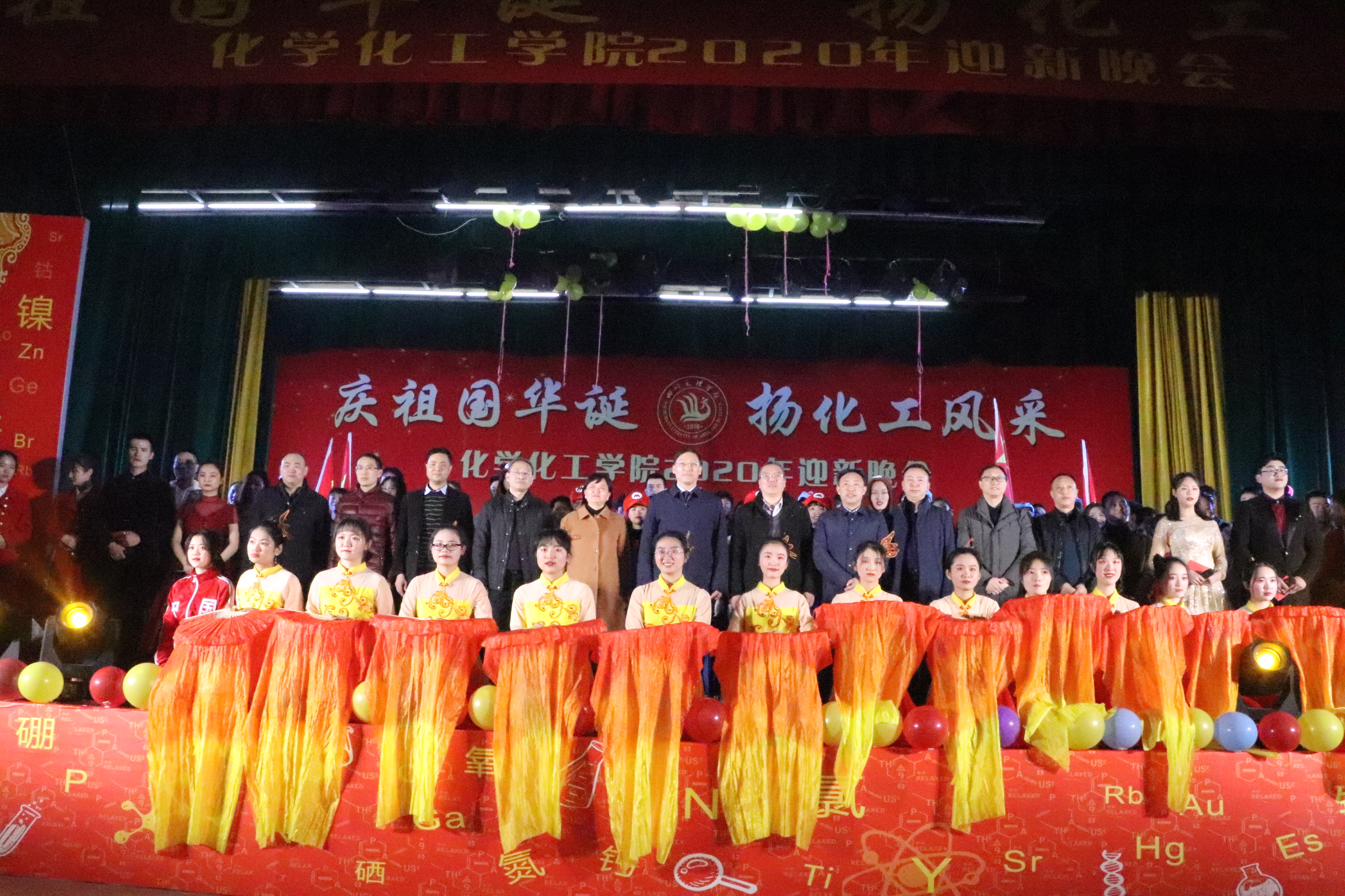 五千载峥嵘厚重,七十年锐意新光。虽经风雨飘摇,但初心未改。2019年12月8日晚上19:30,庆祝祖国成立70周年暨LETOU国际米兰官网“庆祖国华诞,扬化工风采"主题迎新晚会在四川文理学院南坝校区活动中心举办。学校党委书记王成端教授、副校长徐晓宗教授和学校职能部门领导、嘉宾以及化工学院全体老师、同学们近400人观看了晚会。