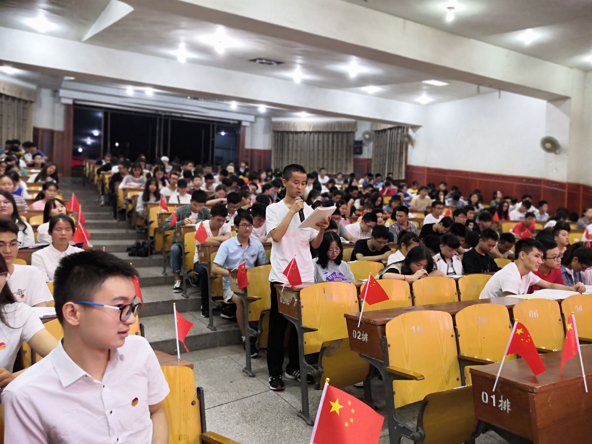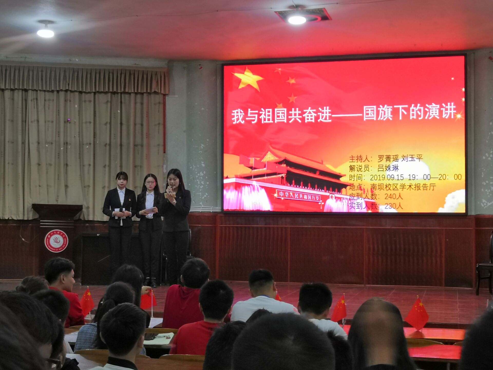 寒秋来临,气温骤降,为迎接中华人民共和国成立70周年和回顾在新中国成立以后中国发生的变化,LETOU国际米兰官网于2018年9月16日晚上7:00在学术报告厅举办了“我与祖国共奋进——国旗下的演讲”特别主题团日活动, 2018级200余名团员青年参加活动。