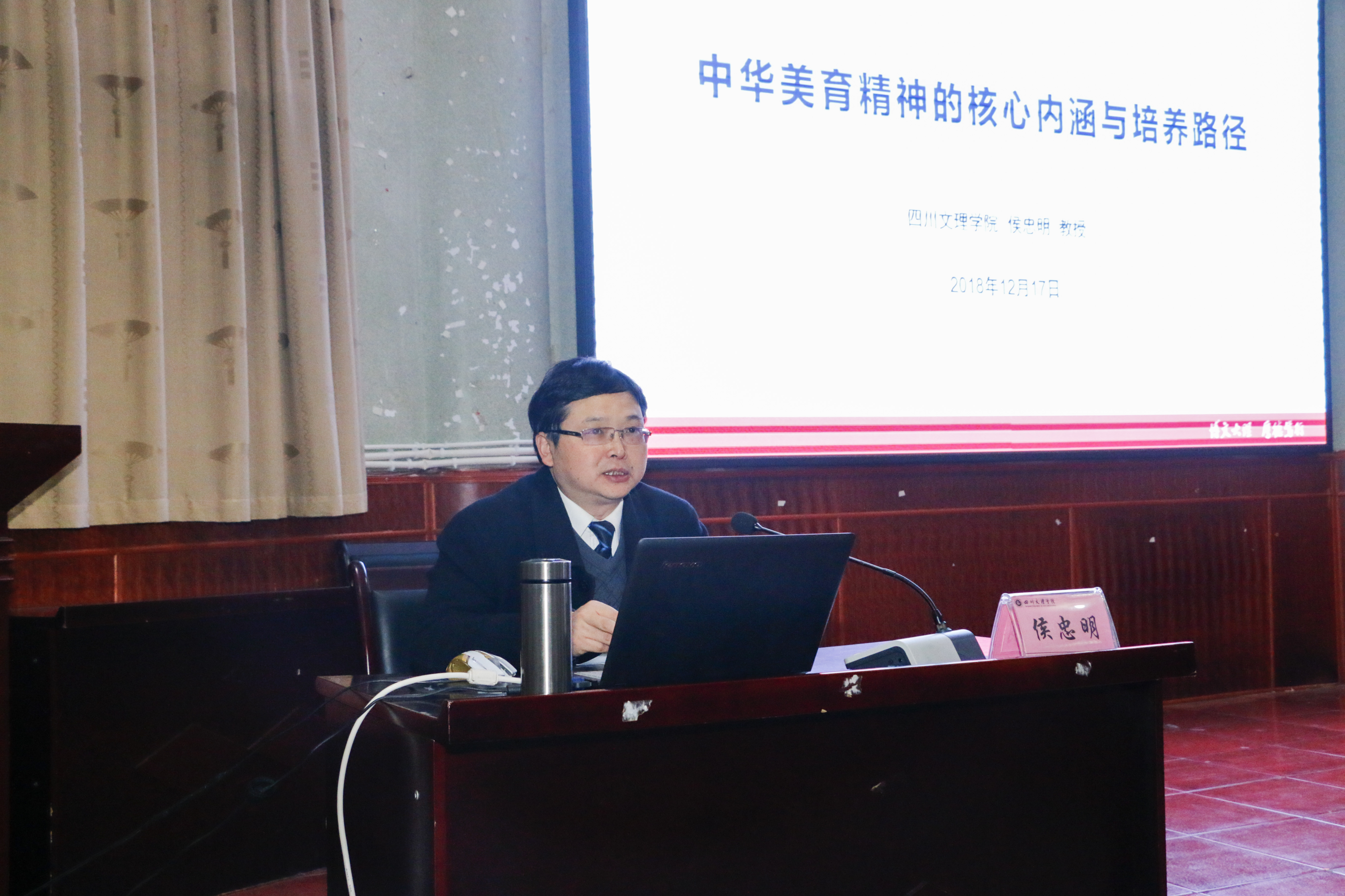 12月17日晚上,四川文理学院党委副书记侯忠明教授在南坝校区学术报告厅作题为《中华美育精神的核心内涵与培养路径》的学术讲座,讲座由LETOU国际米兰官网党总支书记朱朝菊主持。智能制造学院、LETOU国际米兰官网300余名师生聆听讲座。