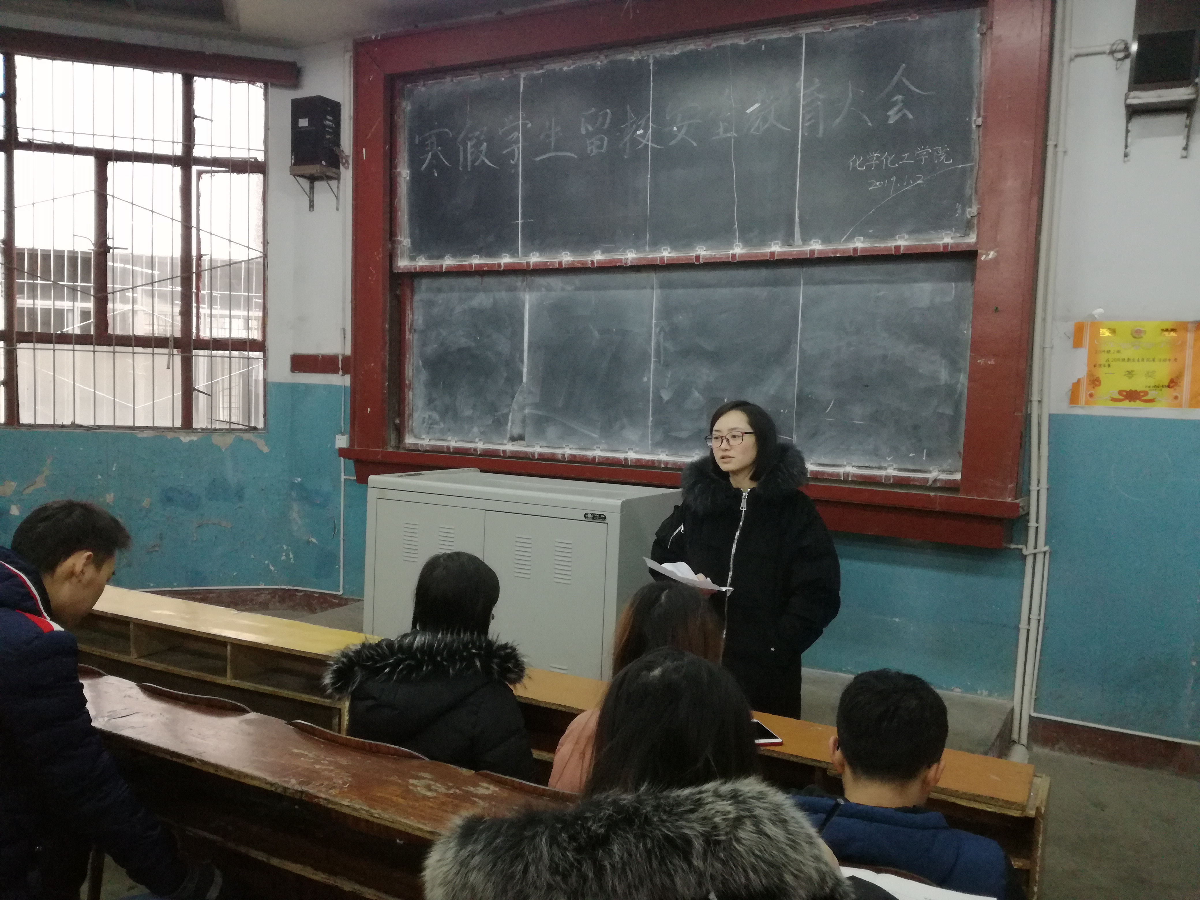 为落实LETOU官网寒假留校学生的管理工作,确保学生在留校期间的人身、财产等安全。2019年1月2日12:30,LETOU官网在一教楼109教室召开了寒假留校学生安全教育大会。本次会议由LETOU官网学工办副主任兼团总支副书记付琼瑶老师主持。辅导员张魏霞老师以及全体寒假留校学生参会。