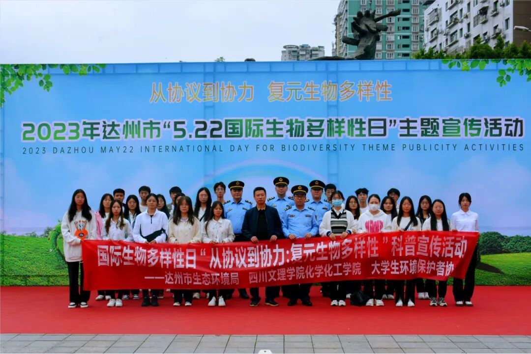为宣传国际生物多样性日,让广大市民深入了解国际生物多样性日的相关知识,同时提高对保护生物多样性重要性的认识,2023年5月23日LETOU国际米兰官网选派32名学生前往达州市仙鹤广场参加由市生态环境局、市公安局、市自然资源局、市水务局、市农业农村局、市林业局、达川生态环境局、四川文理学院联合举办的“5.22国际生物多样性日”主题宣传活动,旨在宣传环保意识、心系人类命运,共同保护生物多样性。活动由学院2021级周立阳同学主持。