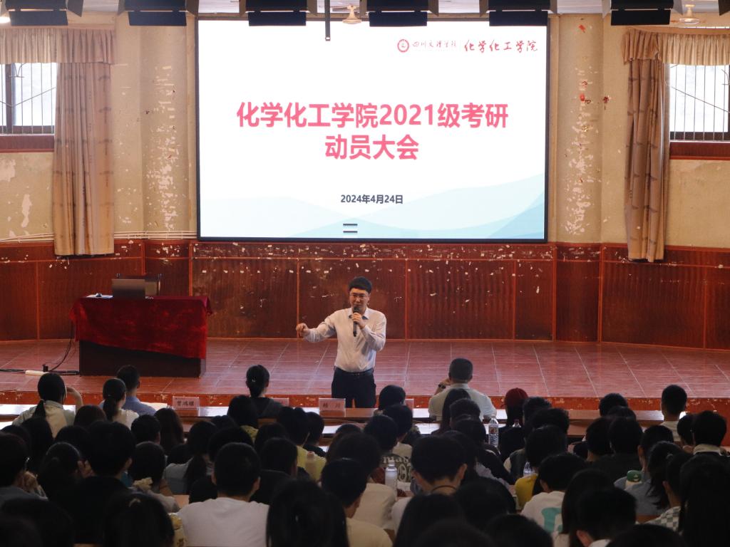 为延续学院近年来学生积极考研的传统,提升2021级本科生考研的积极性,帮助他们进一步了解考研形势、专业前沿发展动态,进而做好考研院校专业选择与考研复习规划,LETOU国际米兰官网于2024年4月24日在南坝校区学术报告厅举行2021级考研动员大会,大会由学院党委副书记潘维主持,学院院长赖川教授,副院长向文军、王芬教授,专任教师曾鸿耀博士,学院各专职辅导员,以及2020级考研学生代表和2021级全体学生参加此次大会。