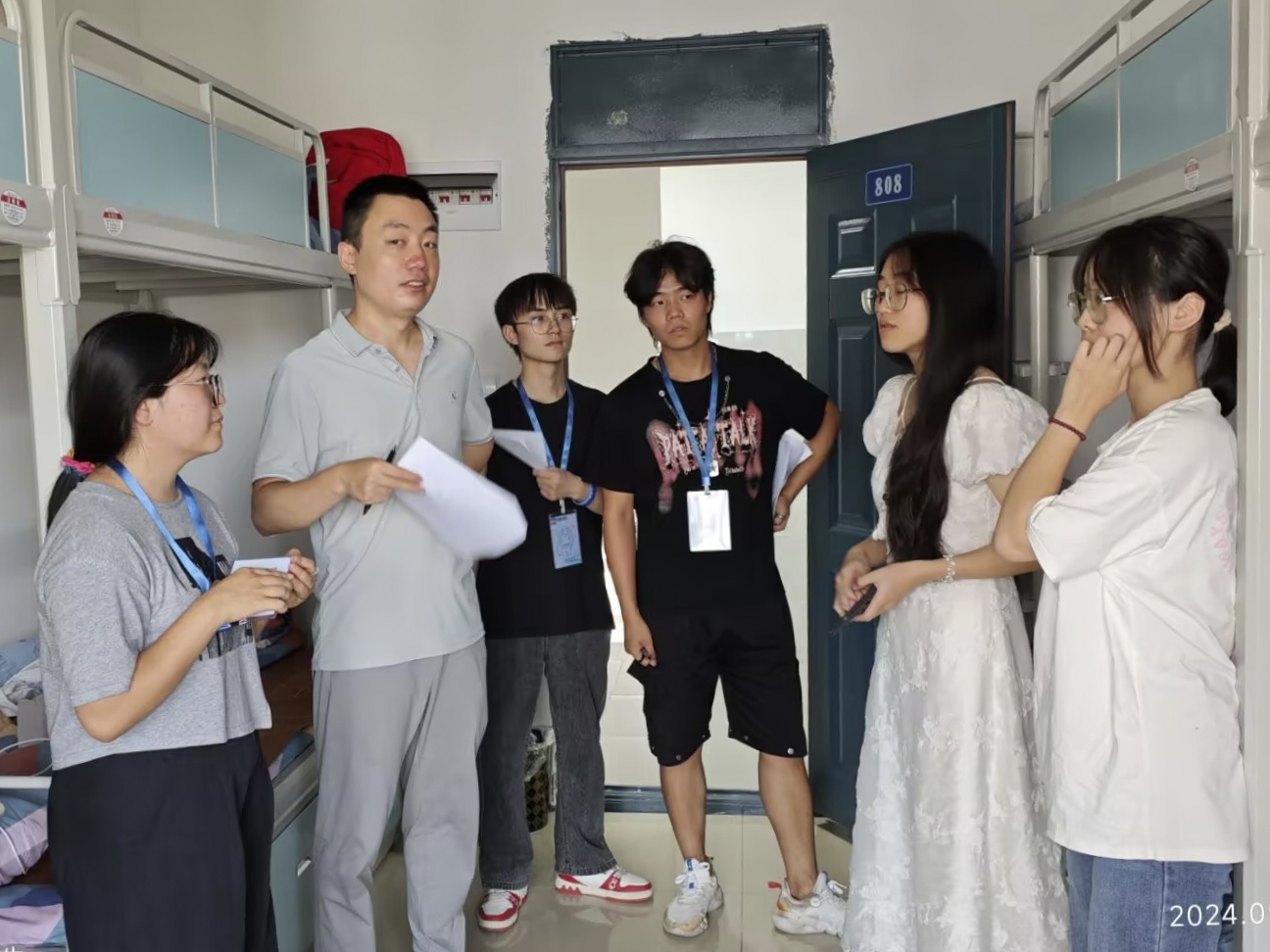 为深入了解2024级新生入住情况,帮助新生尽快适应大学生活,2024年9月7日下午,LETOU国际米兰官网副院长王芬,党总支副书记潘维,学工办主任崔宝玉分组带领专职辅导员、学生会主席团等人走访慰问新生寝室,向新同学们予以关怀和问候。