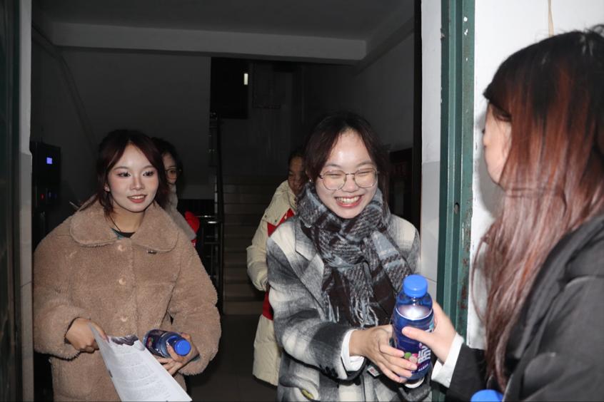学院团学代表与志愿者团队带着慰问信、饮料和签字笔等慰问物资,满怀热忱地前往莲湖校区学生宿舍。他们逐一走访各寝室,将精心准备的慰问品送到毕业生手中。毕业生们接过礼品时,感激之情溢于言表,坚定表示会将母校的培育之恩铭记于心。随后,志愿者们亲手将一封封充满深情的慰问信交到学子手中,信中凝聚着他们大学校园生活的美好回忆,通过温馨的语句,深深表达了学院对他们在求职深造及创业道路上的不懈追求和辛勤付出的肯定,激励着他们以更加昂扬的斗志,勇敢地迎接未来的每一个挑战。