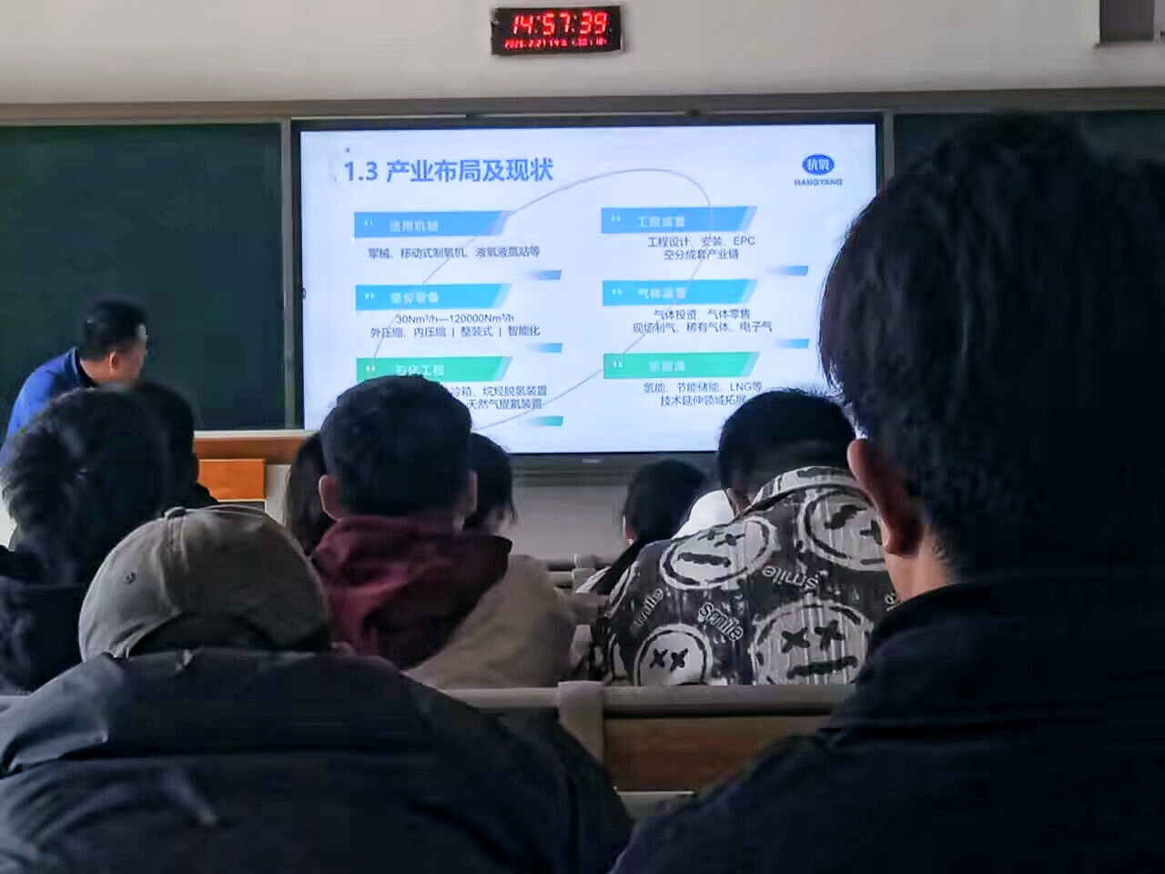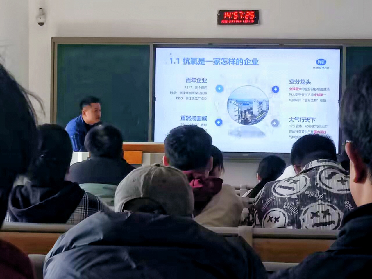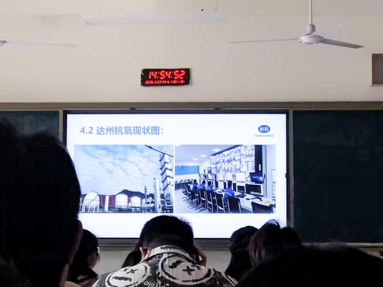 招聘会伊始,达州杭氧有限公司的李经理用简洁易懂的语言,向现场同学们介绍了公司的发展历程与产业现状。随后,他细致阐述了公司的规章制度、福利待遇、企业文化、当下产业结构、组织架构以及人力资源政策等关键内容。同时,还通过图文结合的方式展示了公司自创立以来所获取的资质、赢得的奖项,以及负责承建的各类项目,让同学们对企业有了更为深入的了解。