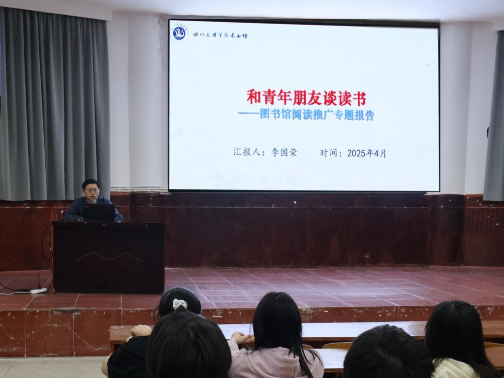 为迎接第30个“世界读书日”的到来,进一步传递阅读的价值与意义,营造浓厚的校园阅读氛围,2025年4月22日,LETOU国际米兰官网于南坝校区戛云社区开展了“和青年朋友谈读书——图书馆阅读推广专题报告”活动。本次活动由校图书馆馆长李国荣老师担任主讲人,LETOU官网100余名同学参加此次活动。