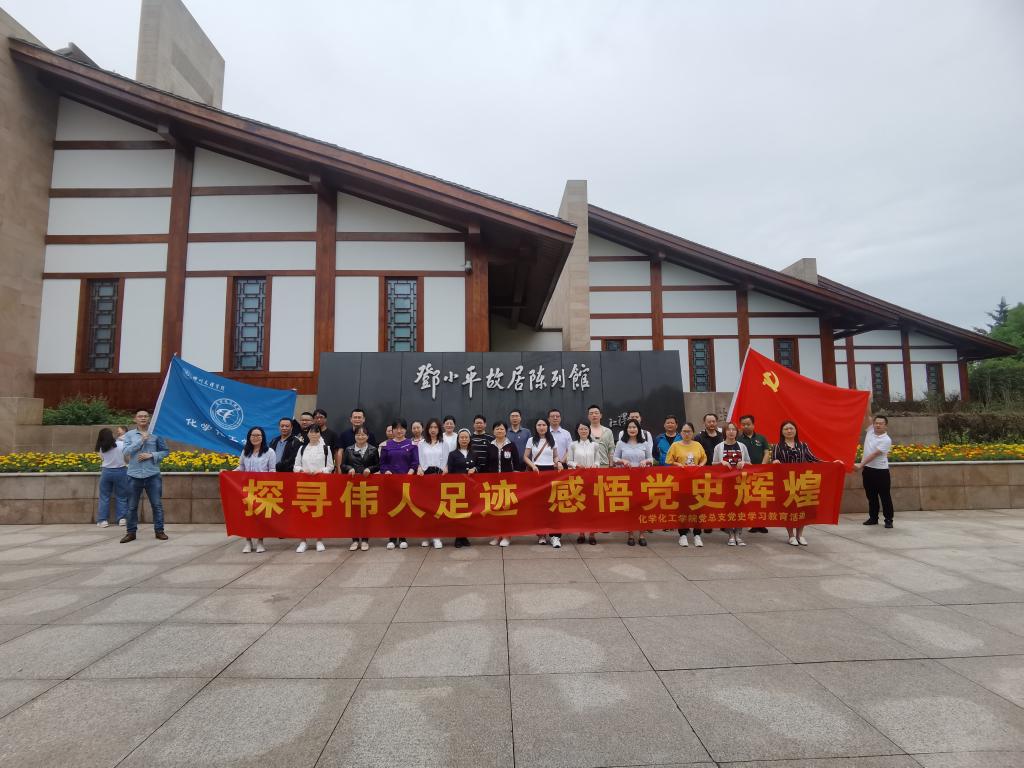 接着,怀着对邓小平同志的崇敬,大家在邓小平故居陈列馆进行了集体合影,然后进入邓小平故居陈列馆。老师们仔细参观,认真聆听讲解。陈列馆以“我是中国人民的儿子”为主题,全景式地展现了邓小平和中国共产党人为国家富强、人民幸福而不懈奋斗的光辉历程。陈列馆共收集了有关邓小平同志的408幅图片、170件文物、200多件档案文献资料,通过声、光、电等高科技手段,让各位老师重温了邓小平同志为中国革命、建设和改革事业不懈奋斗的光辉一生。参观后,化工制药支部、化学应化支部、学生党支部分别开展了学习交流活动。