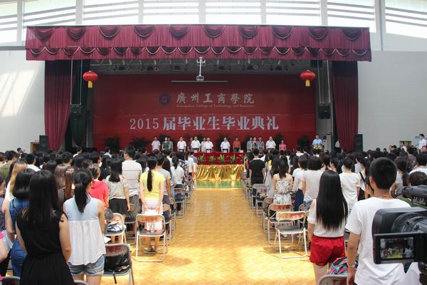 随后,教师代表,在校学生代表,毕业生代表等分别在毕业典礼上作了发言。美术设计系教师代表黄羽嘱咐毕业生,永远不要辜负母校对你们的培养和期望!一定要勤奋努力,追求进步,去迎接生活的各种考验,用自己的行动去弘扬“以德为行 以学为上”的教育思想,秉承“正德厚生励志修能”的校训,并衷心建议每一位同学要摆正自己的位置,始终保持一种平和的心态,从零开始,从小事做起,虚心向他人学习,真诚向实践请教,勇于实践,开拓创新。经济与贸易系13级市场营销1班的在校生王淑敏,代表全体非毕业生衷心祝愿各位即将踏出大学殿堂的师兄师姐们在工作岗位上干出成绩,创造属于自己的一片天地,并表示会继续在学院院长邝邦洪教授的“以德为行 以学为上”教育思想的指引下,以“进课室、进图书馆、进实验实训室、进体育场馆、进社会”的“五进”活动为行动准则,共同奋进,自强不息。财金信息管理系2015届金融1班的毕业生孙凯翔表示,将会牢记母校和老师的教诲与期望,牢记“正德厚生,励志修能”的校训,把“以德为行 以学为上”作为一生的承诺,一生的实践,一生的追求,做拥有智慧并富有激情的人,做德才兼备并勇于创新的人,做负有责任并敢挑重担的人!让我们发扬工商学子坚韧不拔的精神,在社会的各行各业尽展才华,谱写绚丽的人生篇章!