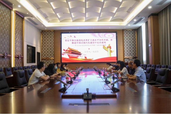 易教授以“坚定不移全面深化改革扩大高水平对外开放,在推进中国式现代化建设中走在前列”为题,领学习近平总书记考察广东重要讲话精神。易教授深入阐释了习近平总书记考察广东回顾、习近平总书记考察广东重要讲话精神要点等内容,强调要将学习宣传贯彻习近平总书记广东考察重要讲话、重要指示精神与深入开展学习贯彻习近平新时代中国特色社会主义思想主题教育结合起来,牢牢把握主题教育的总要求,做好学习贯彻习近平新时代中国特色社会主义思想的深化、内化、转化工作,坚持学思用贯通、知信行统一,推动广大民主党派人士真学真懂真信真用,在贯彻落实上取得新进展新成效。