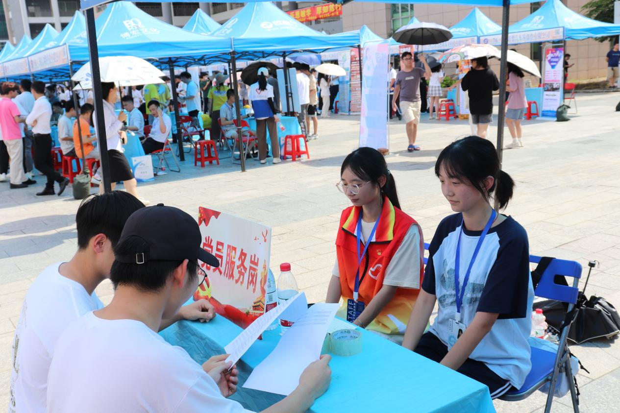 【本网讯】为扎实推进学习贯彻习近平新时代中国特色社会主义思想主题教育,落实主题教育“学思想、强党性、重实践、建新功”的总要求,贯彻落实党中央、国务院关于高校毕业生就业工作的决策部署,积极响应省厅“百日冲刺”专项行动的有关活动精神,切实解决毕业生关切的实际问题,6月20日下午,ky开元集团官网2023“百日冲刺促就业”线下大型校园供需见面会在花都校区图书馆门前文化广场和三水校区厚德广场同步举行,为毕业生和用人单位搭建信息交流和“双向选择”的平台,促进毕业生更充分更高质量就业。