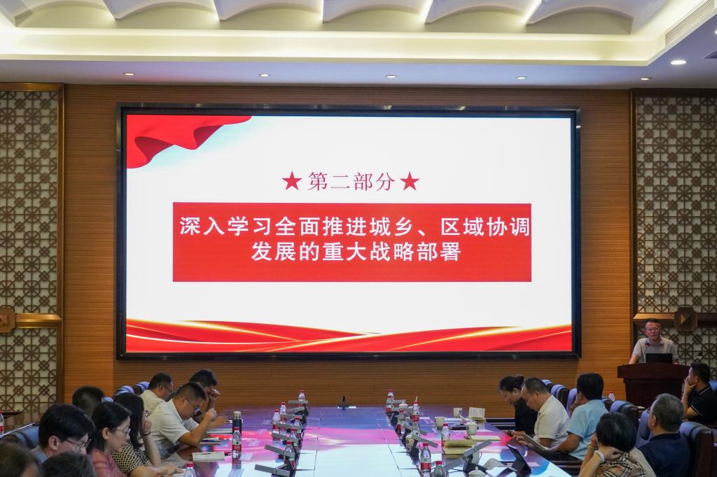 朱特威从“深刻认识为什么要全面推进城乡、区域协调发展”“深入学习全面推进城乡、区域协调发展的重大战略部署”“学习领会习近平总书记视察广东重要讲话重要指示精神,深刻认识‘百千万工程’重大意义”“坚持校地共建平台,以特色育人促进区域协调发展”四个方面进行了领学。他提出,高校是教育阵地、科技重地、人才高地,承担着人才培养、科学研究、社会服务、文化传承创新、国际交流合作五大职能,是推进中国式现代化进程的重要力量。推动高校与区域经济社会深度融合发展,主动融入地方、服务地方,充分发挥高校在推动区域高质量发展中的支撑作用。