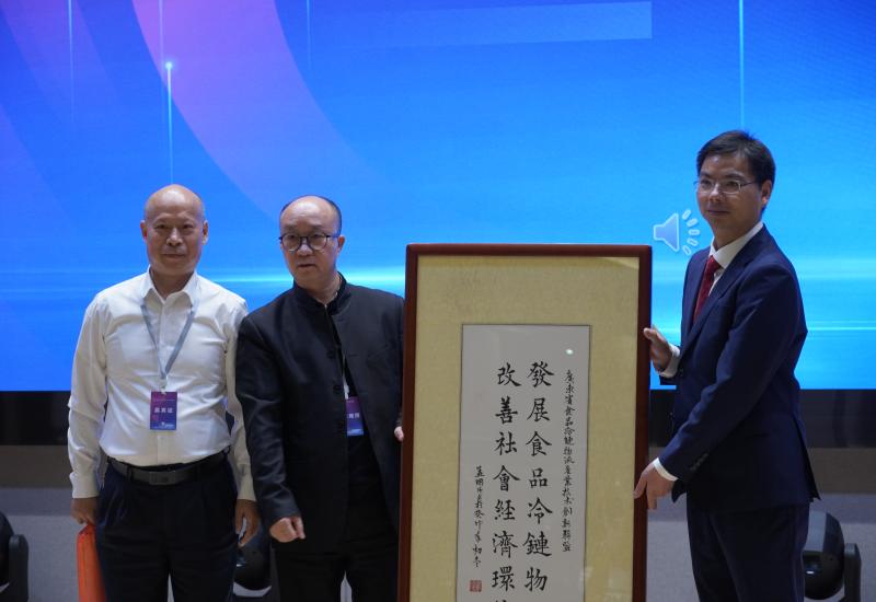 最后,中国市场杂志社广东办主任梁钜涛先生代表孟国强先生向ky开元集团官网校长王日华教授、粤港澳大湾区智慧冷链产业学院执行院长谢如鹤教授交接书法作品“发展食品冷链物流,改善社会经济环境”的题词和“粤港澳智慧冷链产业学院”牌匾,孟国强先生通过为大会题词书法作品表达对联盟的良好祝愿和期望。