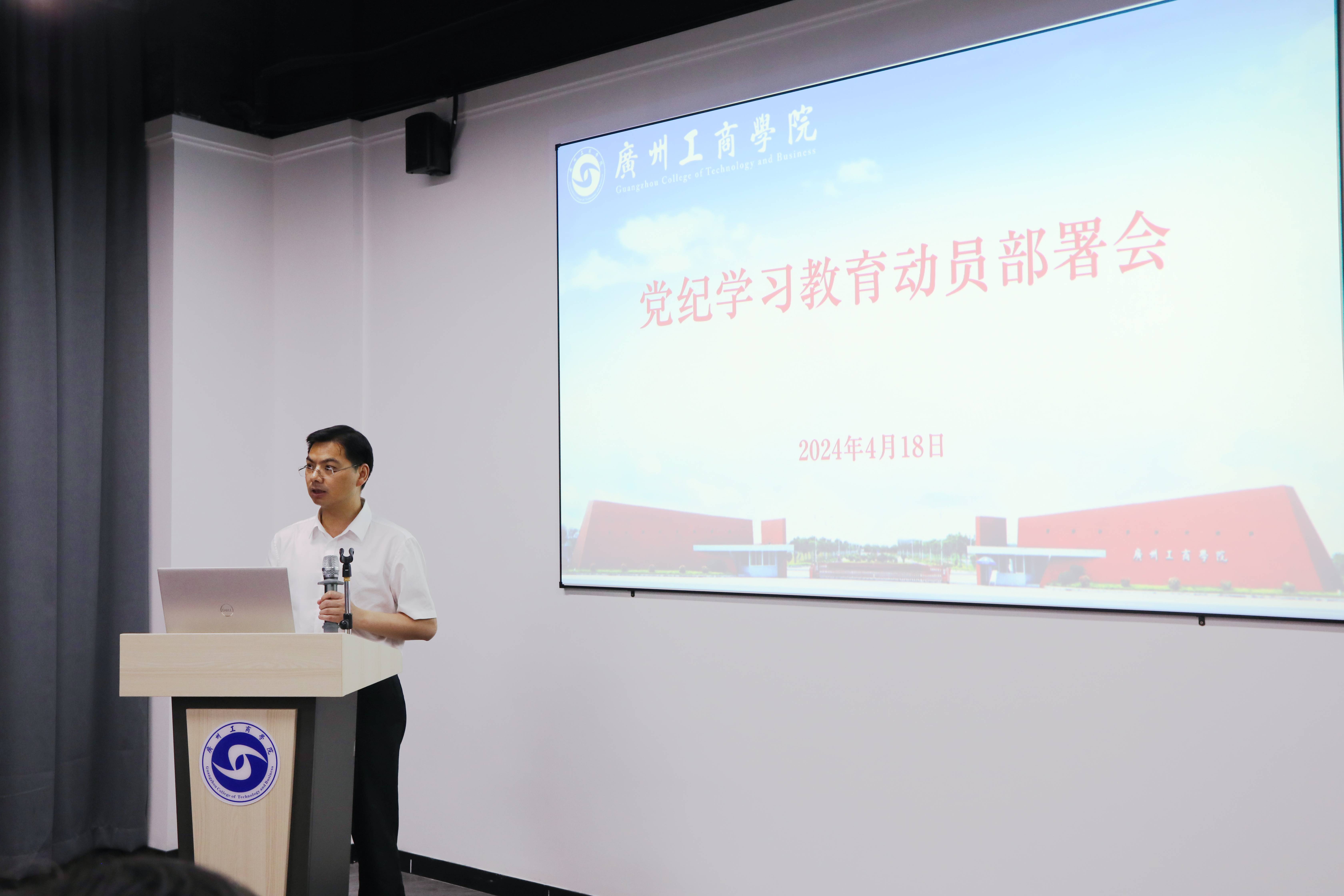 朱特威副书记从深刻把握开展党纪学习教育的重大意义、把握学习的重点内容和目标以及推进落实的具体安排等方面作了动员部署,对高标准高质量组织开展好党纪学习教育提出要求。他强调,全校各级党组织要把开展党纪学习教育与深入贯彻落实习近平总书记视察广东重要讲话重要指示精神、落实本科教育教学合格评估等各项工作紧密结合,加强组织领导,周密安排部署,开展好学习研讨和警示教育,基层党组织书记讲纪律党课,引导党员特别是党员领导干部做到学纪、知纪、明纪、守纪,坚定理想信念,牢记纪律“戒尺”,始终做到忠诚干净担当,为学校高质量发展提供坚强纪律保障,推动党纪学习教育取得实实在在的成效。